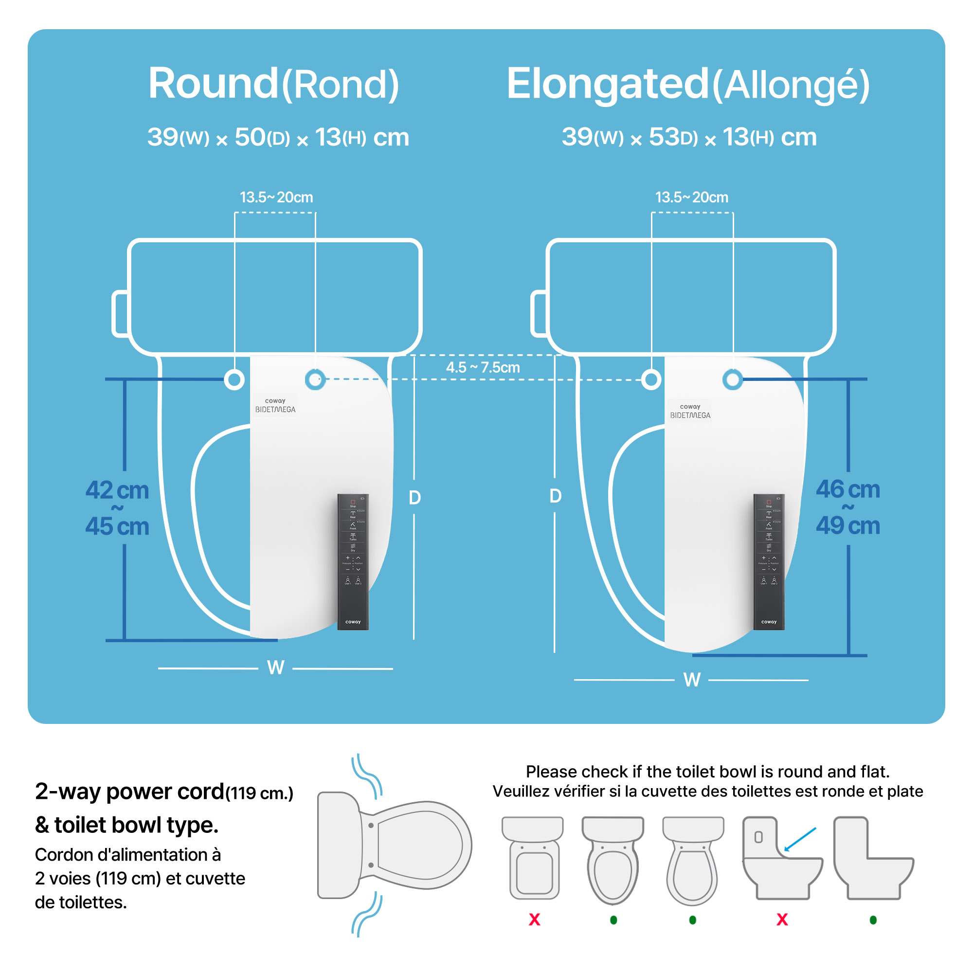 Toilets are generally uniform is scale, but these 4 measurements will ensure a perfect fit for your Bidetmega.