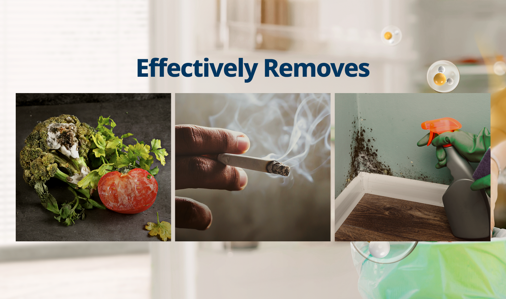 4The concentration of ammonia, acetaldehyde and acetic acid were proven to be removed within 30 minutes by FCG Research Institute, Inc. Human Life Science Lab. It is not a demonstration result in the actual use space. Not all odors and gases may be supported. → Tested with Coway Airmega 150, 160, AP-1512HH, AP-1512HHS, 400, 400S
