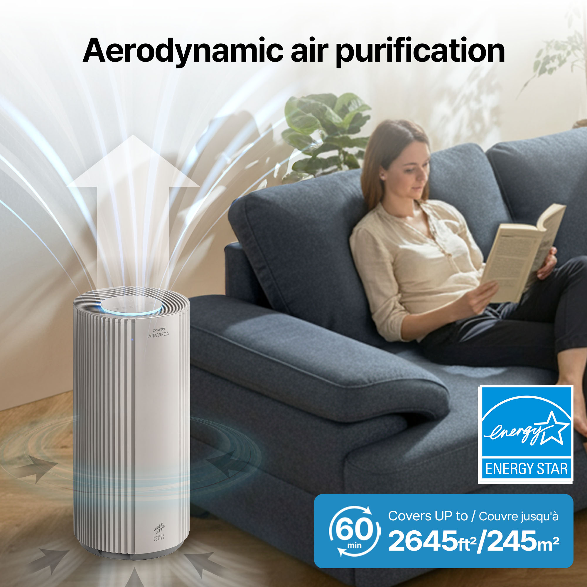 1 Airmega air purifiers have been proven to trap dust, pollen, dander in the air based on KCL(Korea Conformity Laboratories) testing. They have been tested according to the Korea Air Cleaning Association standard (SPS-KACA 002-132:2022 Modified) to measure the 0.01㎛ size of particle removal rate. It was tested on maximum airflow speed in normal room temperature and humidity conditions. The performance may vary in the actual living environment of customers. Tested with Airmega Aim, 50, 100, 150, Tower AP-1216L, Mighty AP-1512HH, MightyS AP-1512HHS, 200M, Icon, 230, 240, 250, 250S, 300, 300S, 350, 400, 400S, 450, ProX